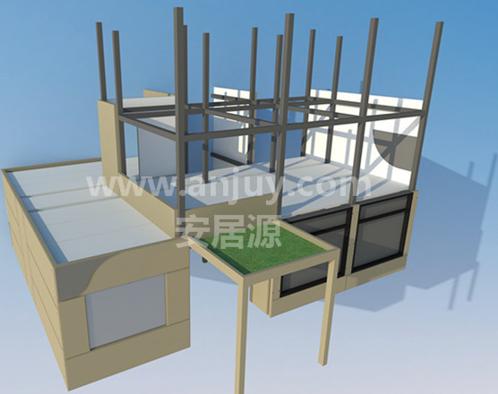 組裝房 - 特點1、材料環(huán)保,可回收利用;2、建設(shè)速度快,施工周期短;3、材料工廠化加工,現(xiàn)場裝配化施工,減少了施工對環(huán)境的影響,實現(xiàn)